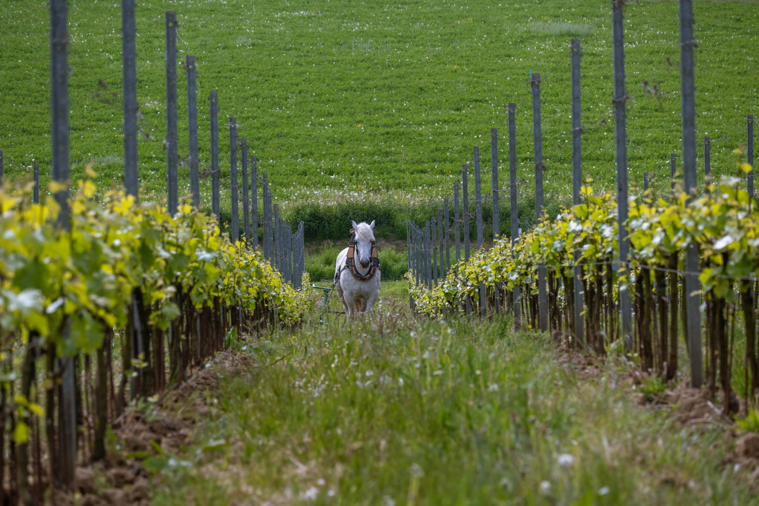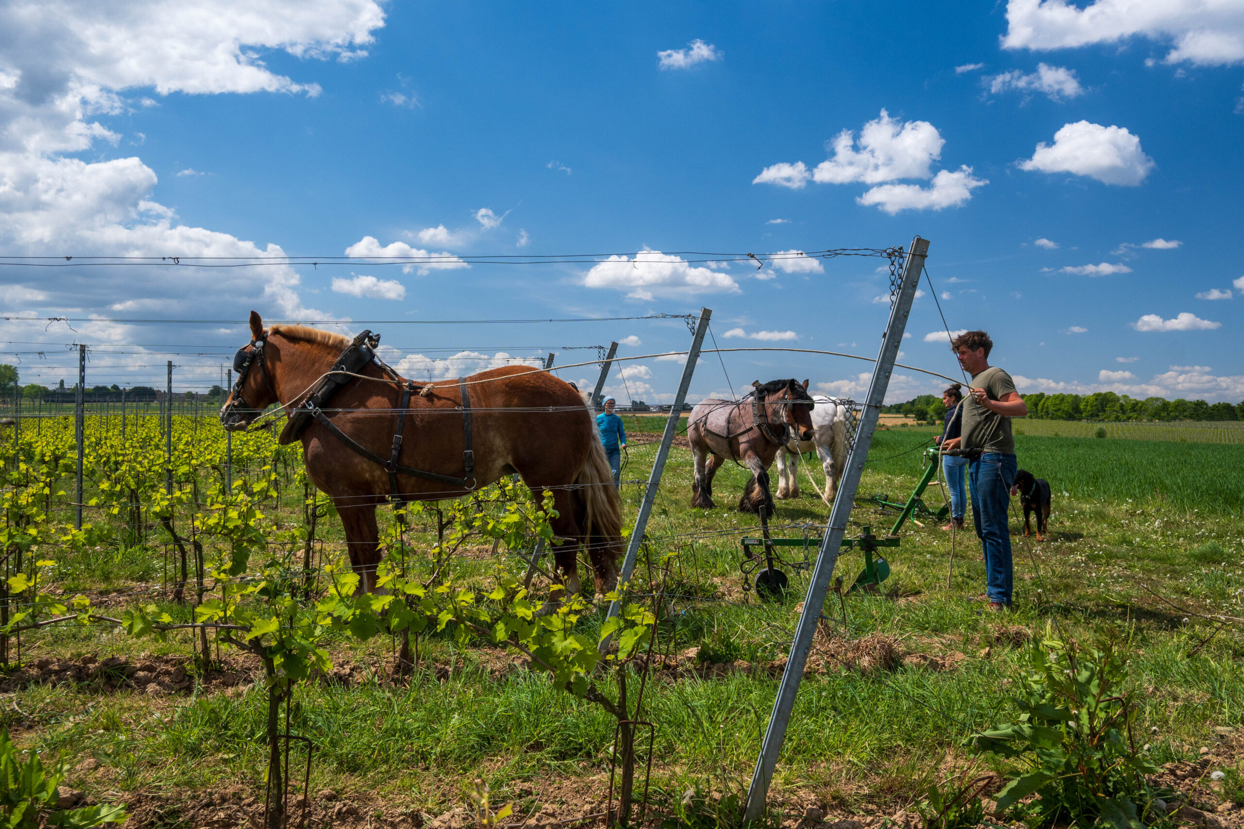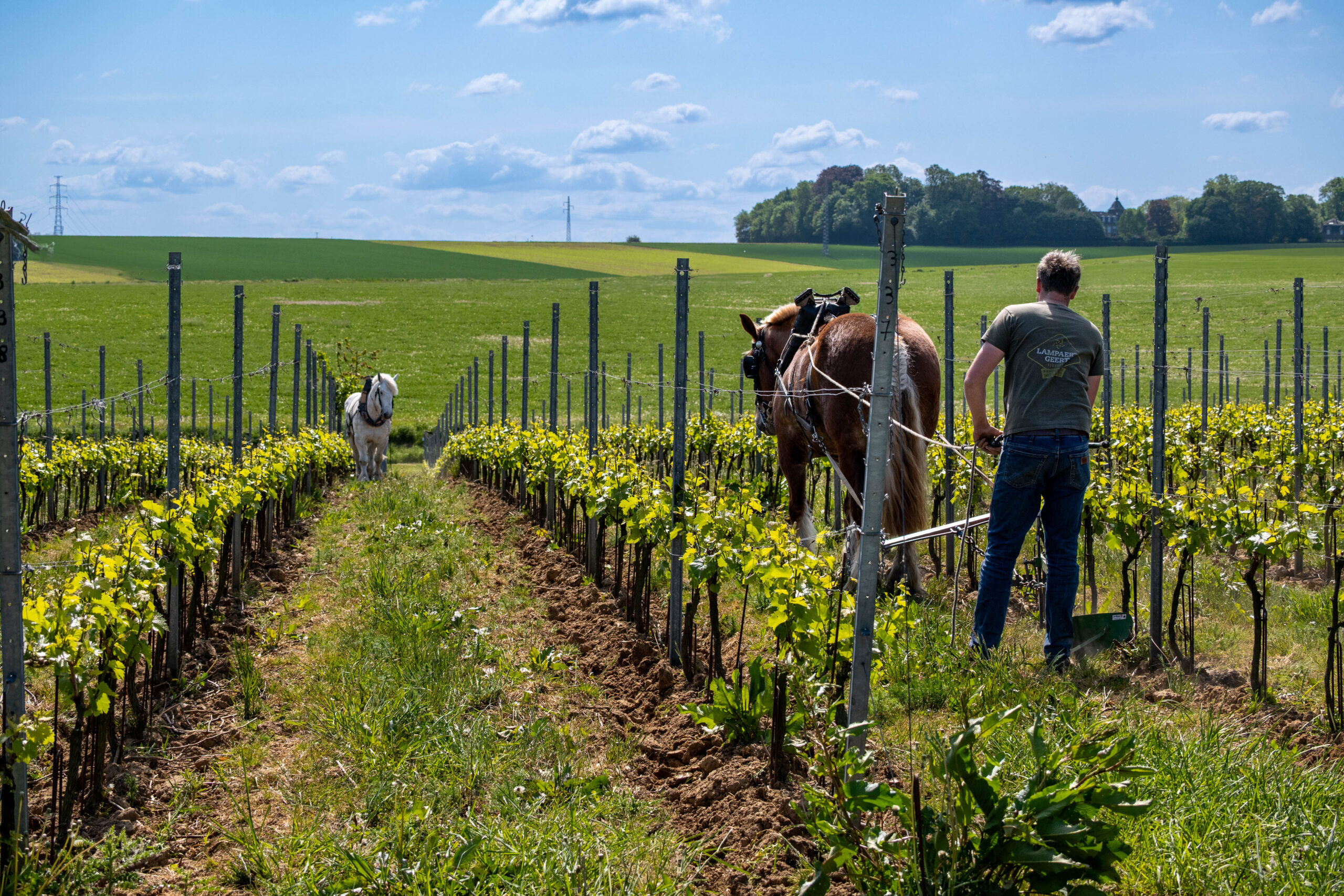 Wijngaard onderhoud met paarden