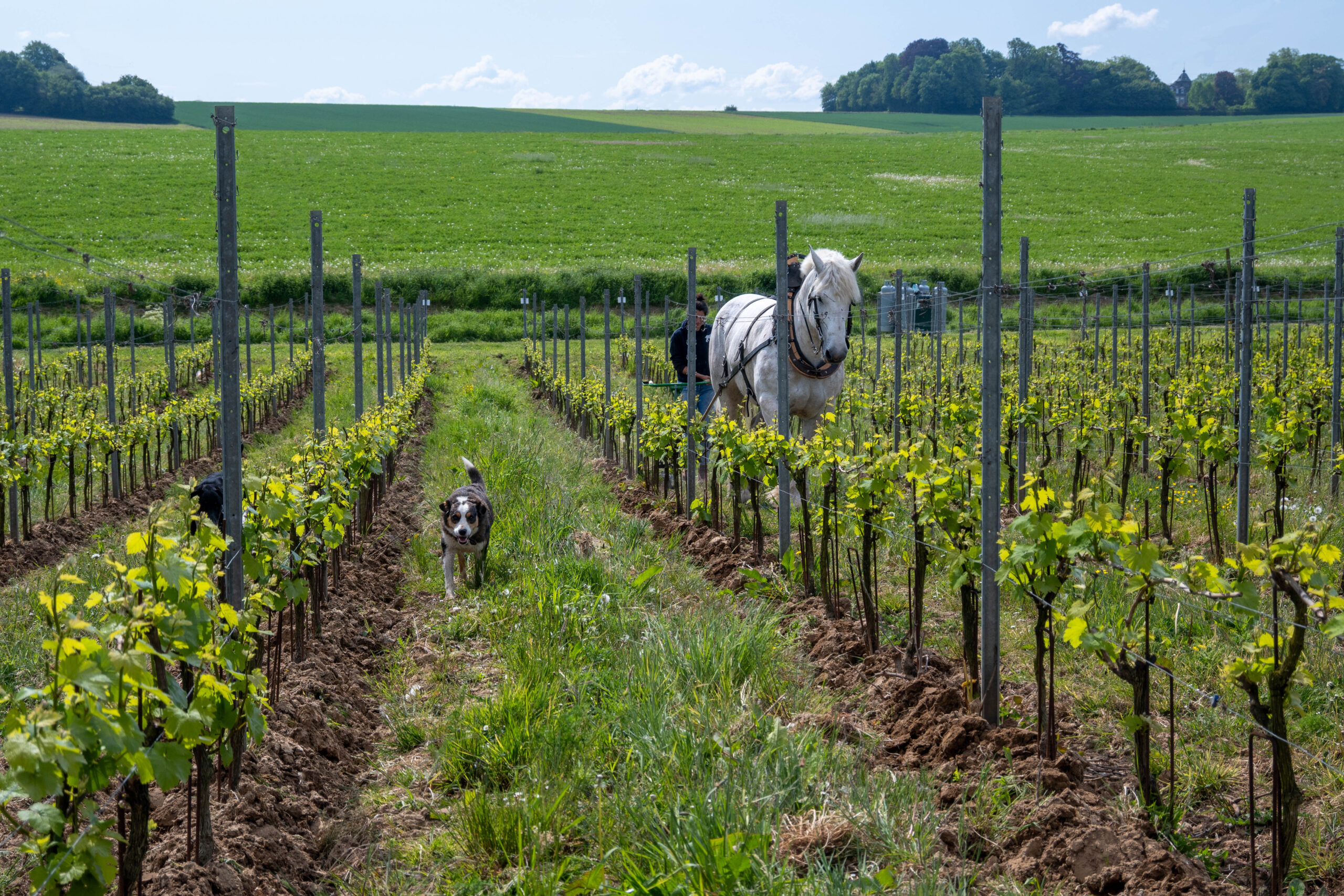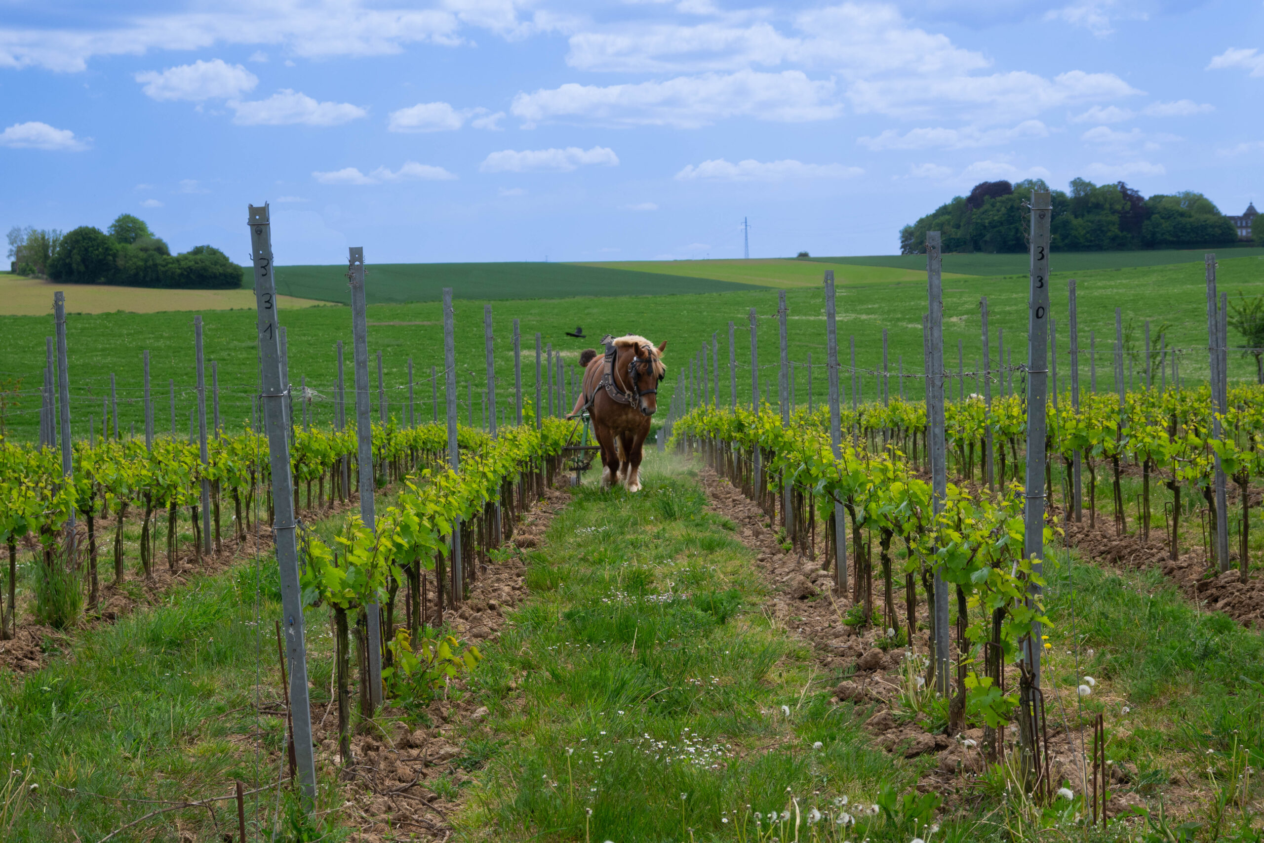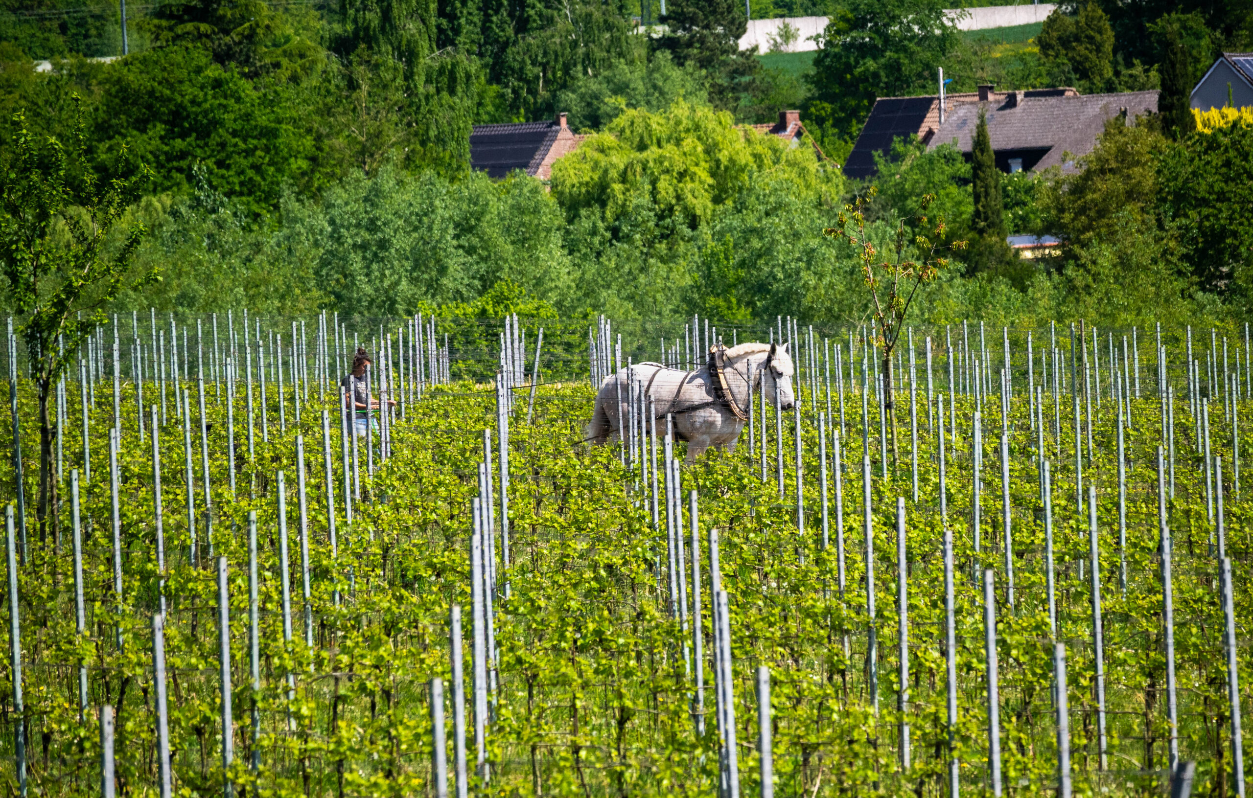 Wijngaard onderhoud met paarden